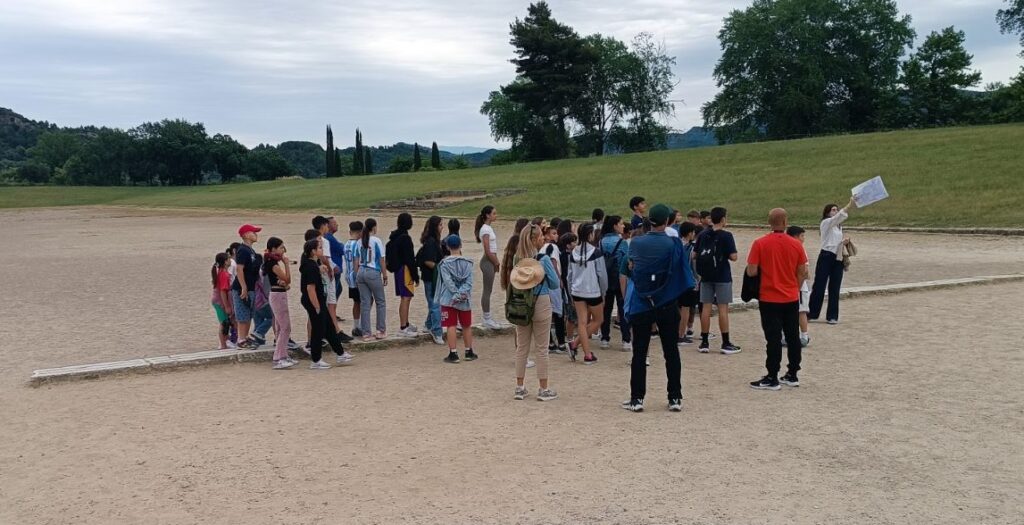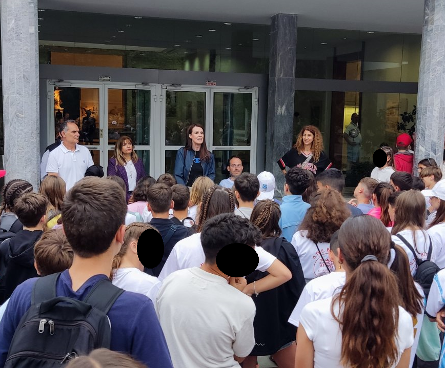 Ευχάριστη έκπληξη υπήρξε την Πέμπτη 15 Μαΐου, κατά την μετάβαση της αποστολής από τον αρχαιολογικό χώρο στο αρχαιολογικό μουσείο, η συνάντηση με τον Διευθυντή της Διεύθυνσης Φυσικής Αγωγής του Υπουργείου Παιδείας, Θρησκευμάτων και Αθλητισμού, κ. Δημήτριο Κερερέ, την Εκτελεστική Διευθύντρια και Εθνική Συντονίστρια της Εθνικής Οργανωτικής Επιτροπής Αθλητικής Παιδείας & Αξιών “ΔΗΜΗΤΡΙΟΣ ΒΙΚΕΛΑΣ”, κ. Ιλεάνα Κοκλώνη, την Ελληνίδα Ολυμπιονίκη στο τριπλούν, κ. Όλγα Βασδέκη και τον Έλληνα Παραολυμπιονίκη στο άθλημα μπότσια, κ. Γρηγόριο Πολυχρονίδη, ο οποίος συνοδεύονταν από τη σύζυγό, βοηθό και συναθλήτριά του, κ. Κατερίνα Πατρώνη, οι οποίοι είχαν μεταβεί στην Αρχαία Ολυμπία προκειμένου να παρακολουθήσουν τους αγώνες ως εκπρόσωποι της ηγεσίας του Υπουργείου και απεύθυναν έναν θερμό χαιρετισμό στα παιδιά.